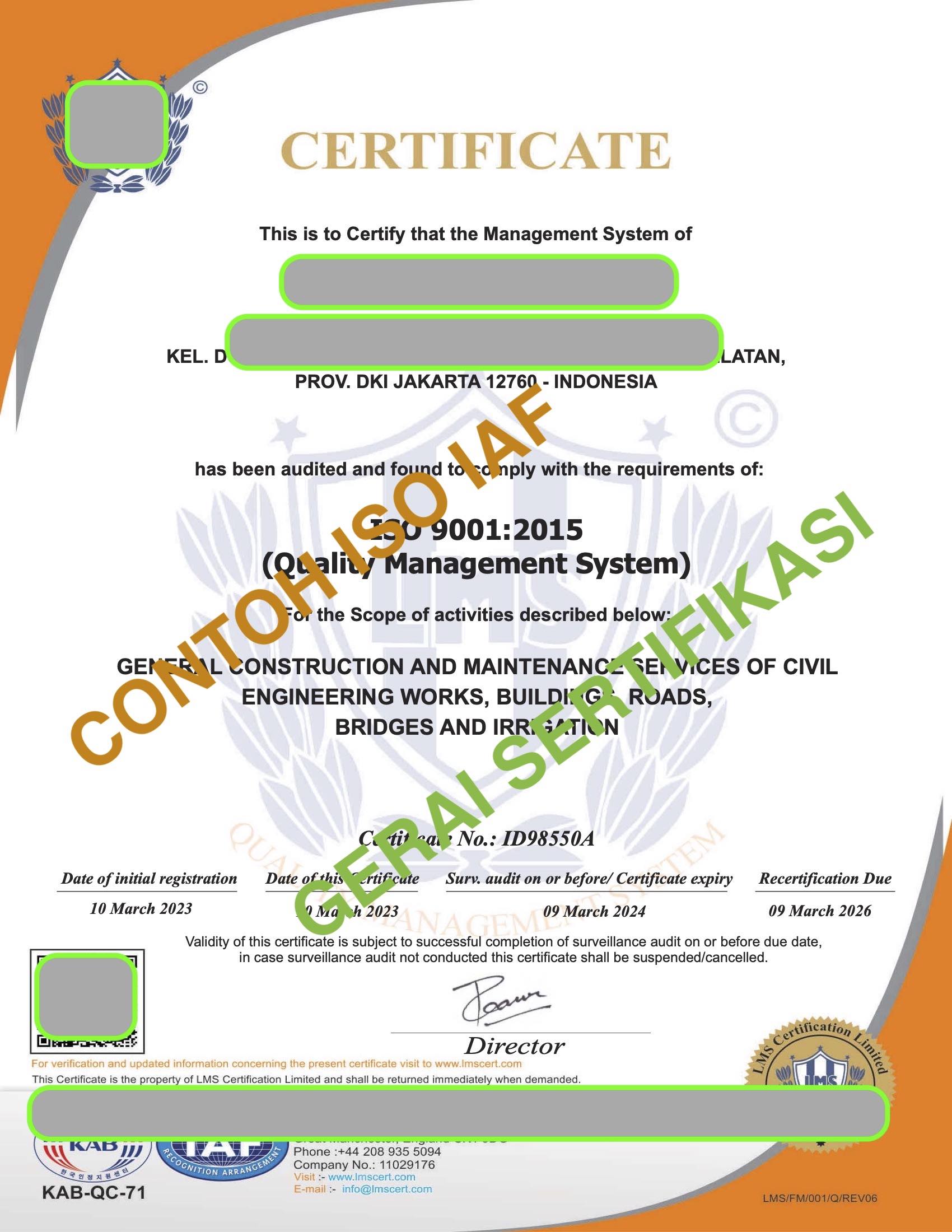 Klik untuk biaya pengurusan CV/PT terbaikISO akreditasi KAN, Akreditasi IAF dan Non Akreditasi